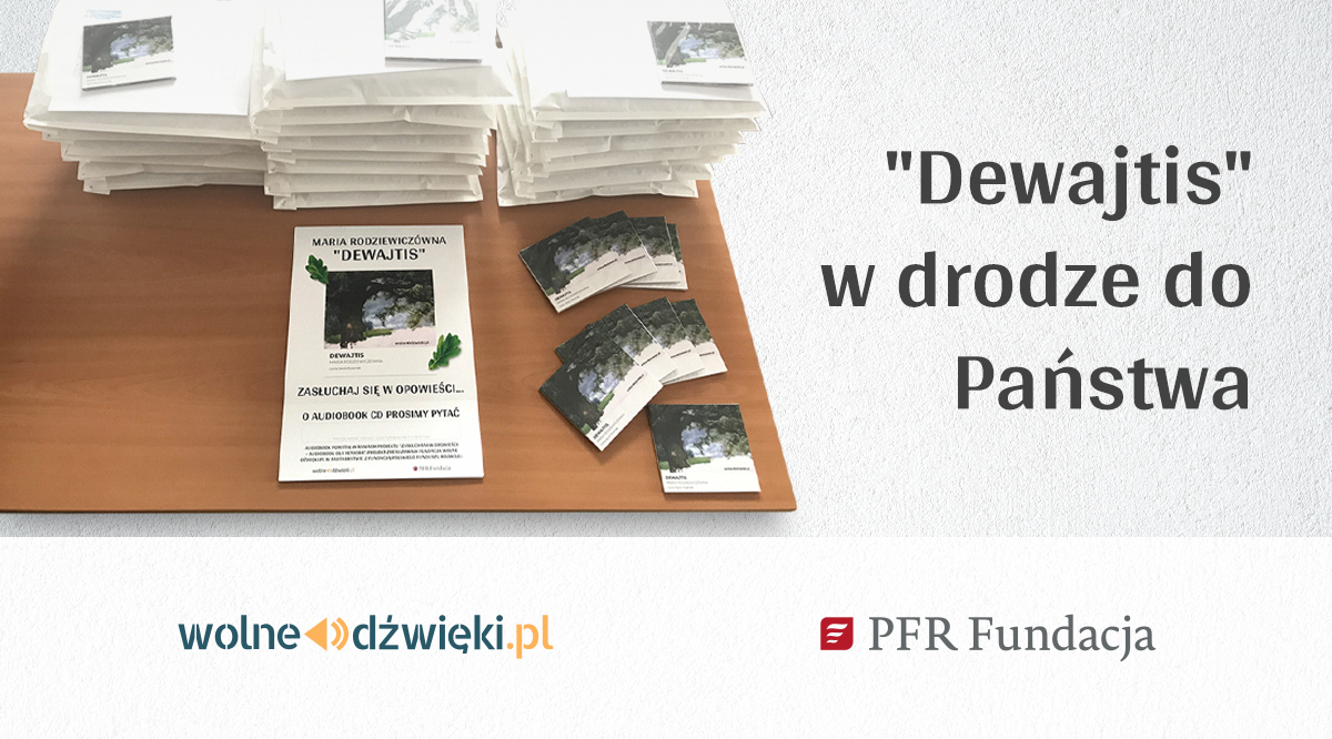 Płyty z audiobookiem „Dewajtis” Marii Rodziewiczówny w interpretacji Jacka Rozenka zostały rozesłane do domów kultury, domów opieki oraz innych instytucji współpracujących z seniorami. Otrzymaliśmy już pierwsze sygnały wdzięczności i chęci dalszej współpracy na polu udostępniania seniorom literatury w formie audiobooków. Dziękujemy za ciepłe przyjęcie naszego pomysłu: „Jesteśmy zachwyceni Państwa projektem i gratulujemy realizacji i pomysłu. Super inicjatywa i działalność!” Cieszymy się, że sprawiła Państwu radość i życzymy miłego słuchania.